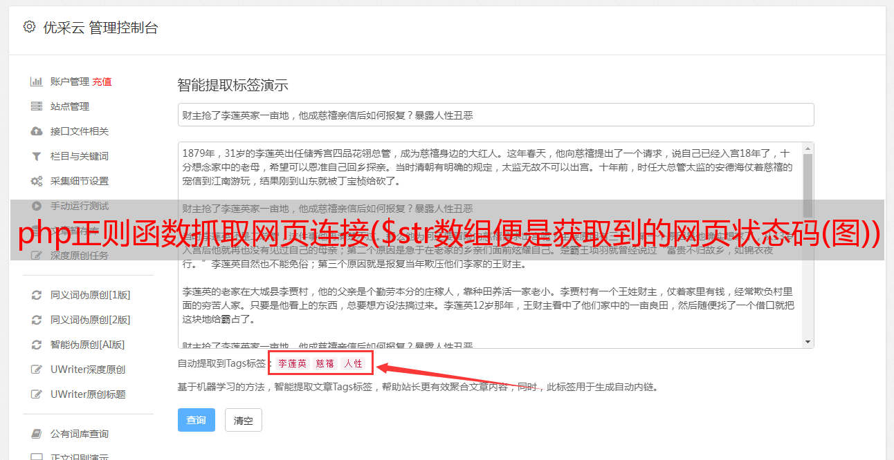 优采云 发布时间: 2021-12-25 03:16php正则函数抓取网页连接($str数组便是获取到的网页状态码(图))