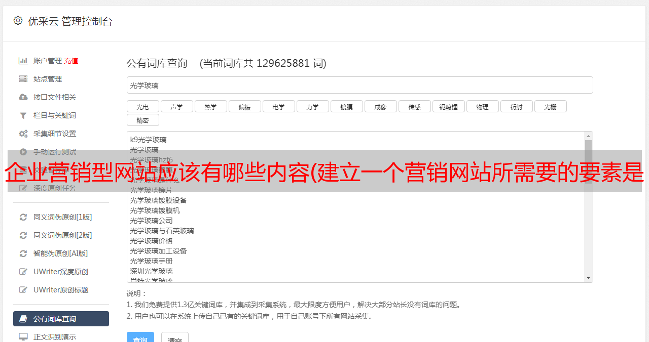 优采云 发布时间: 2021-12-25 04:10企业营销型网站应该有哪些内容(建立一个营销网站所需要的要素是什么?(图))