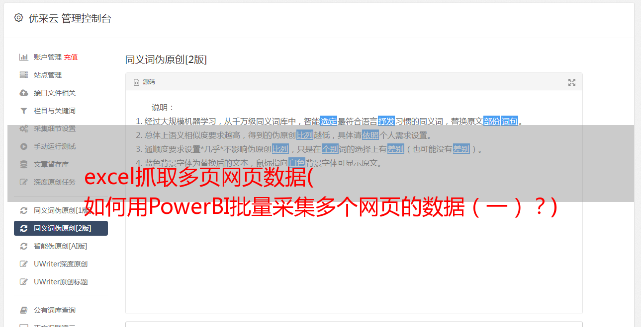 当然,PowerBI 并不是专业的爬虫工具。如果网页比较复杂或者有反爬虫机制,还是要使用专业的工具,比如R或者Python。在使用PowerBI批量抓取某个网站的数据之前,先尝试采集一个页面。如果可以采集