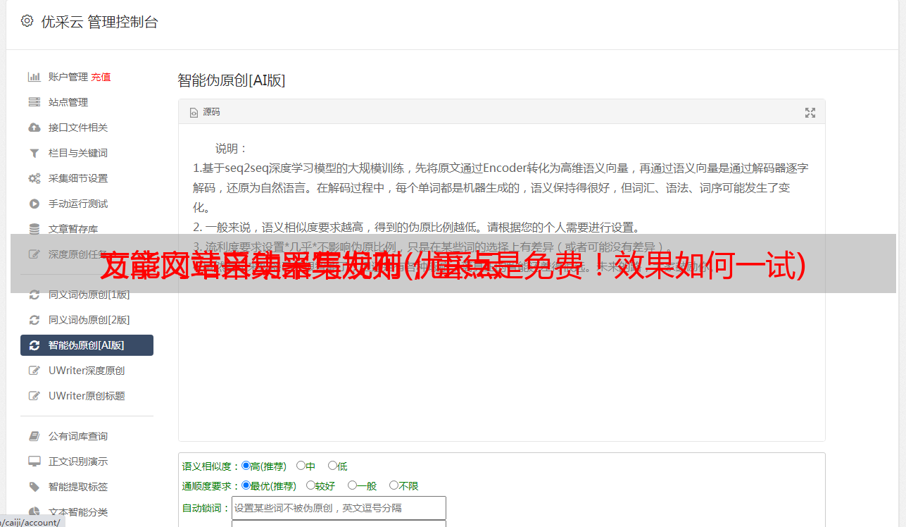 同行或类似的文章,并将它们合并为自己的原创、半原创文章。关键词有针对性的搜索,所有相关文章一下子就能找到,伪原创工具的使用可以帮助你大大提高新内容的采集
