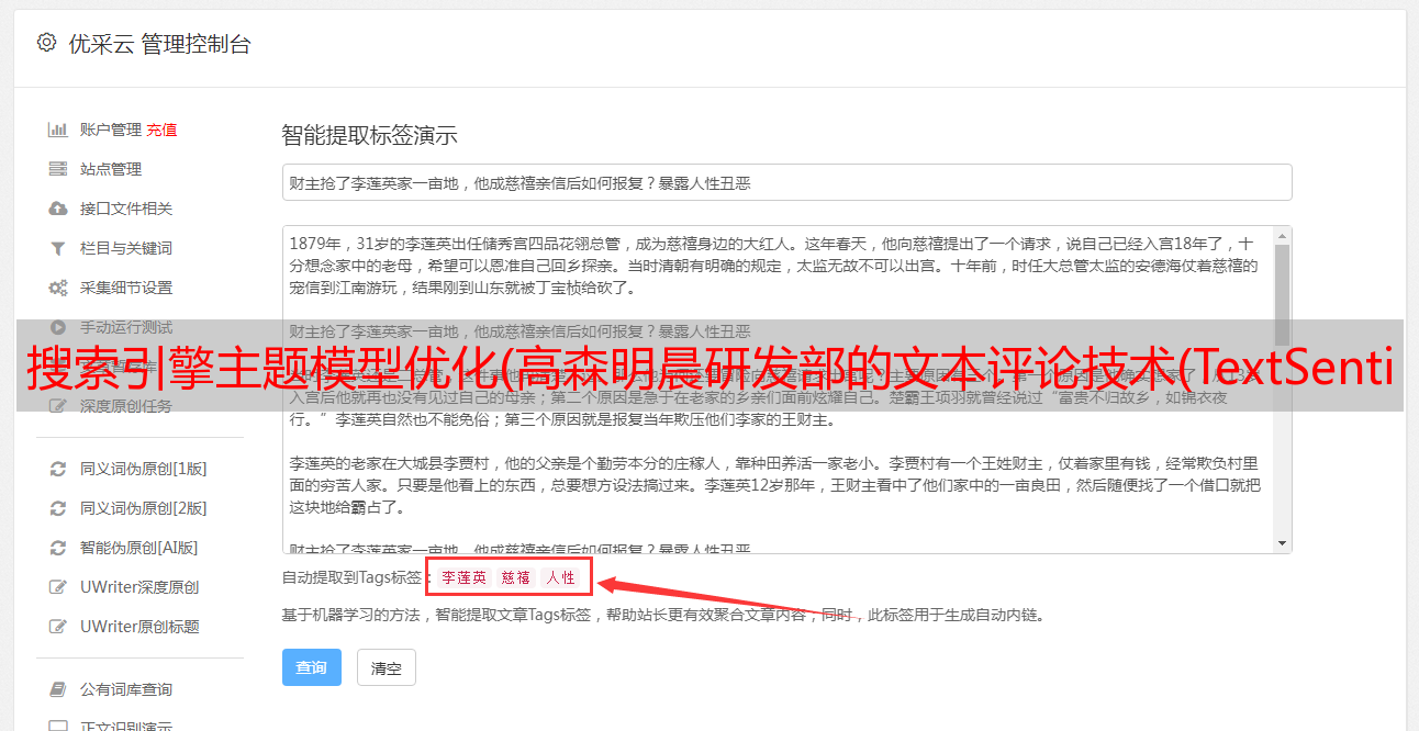 优采云 发布时间: 2021-12-26 01:11搜索引擎主题模型优化(高森明晨研发部的文本评论技术(TextSentiment)主题模型)