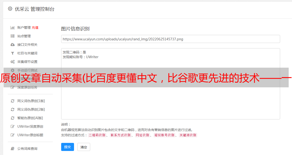 当用户访问您的网站时,触发程序运行,根据设置的关键字通过搜索引擎(可定制)采集网址,然后自动抓取网页内容。程序通过精确计算对网页进行分析,丢弃不是文章的内容。页面的URL,提取优秀文章的内容,最后进行