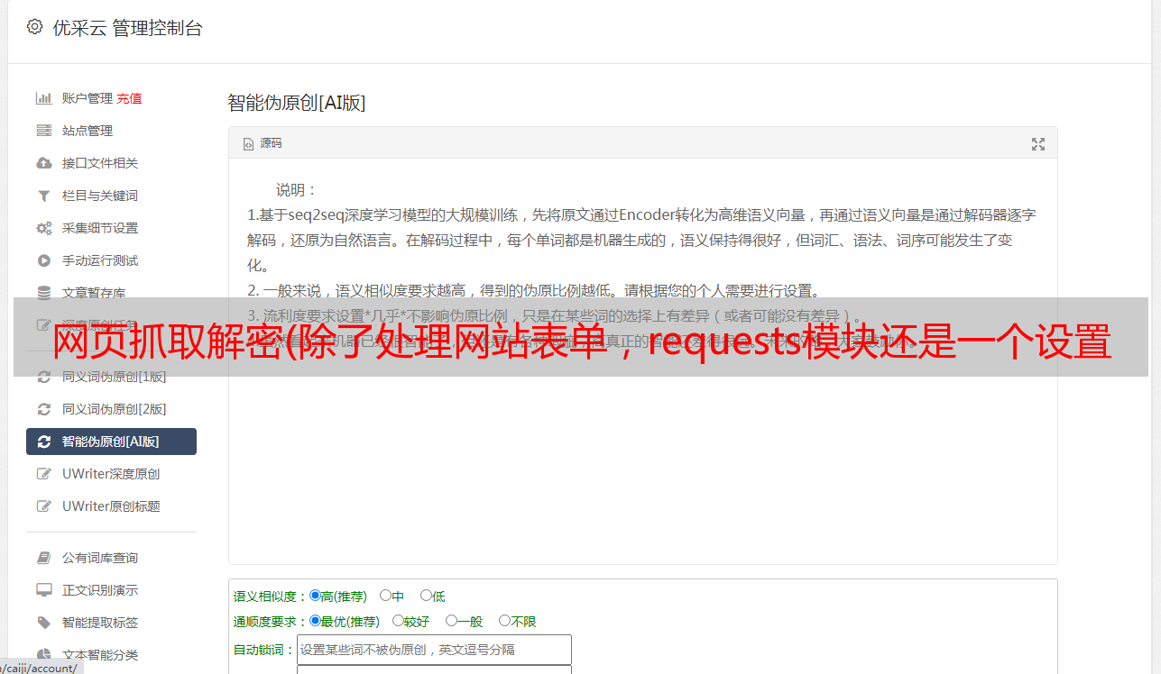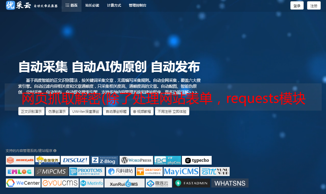优采云 发布时间: 2021-12-26 15:16网页抓取解密(除了处理网站表单,requests模块还是一个设置请求头的利器)