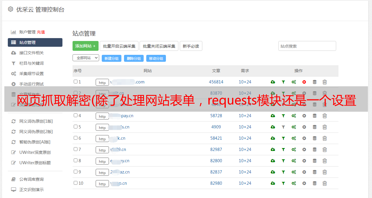 合理的速度控制是你不应该打破的规则。过度消耗别人的服务器资源会让你处于非法状态,更严重的是,这样做可能会导致小网站宕机甚至下线。关闭网站是*敏*感*词*的,这是一个彻头彻尾的错误。所以请控制好采集