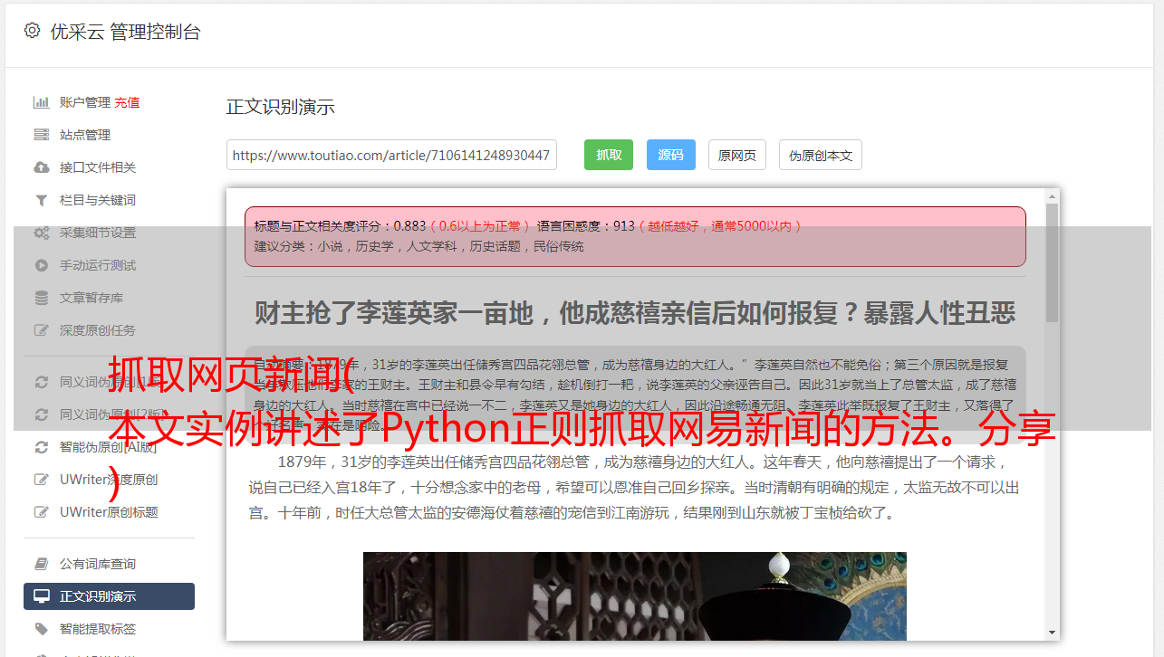 抓取网页新闻( 本文实例讲述了Python正则抓取网易新闻的方法。分享 )