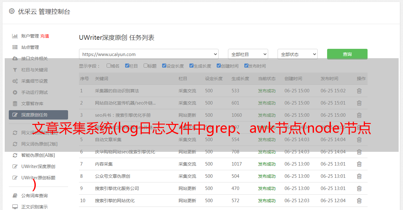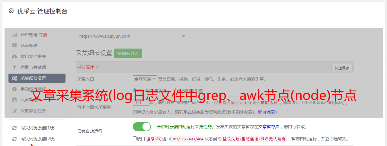 文章采集系统(log日志文件中grep、awk节点(node)节点 )