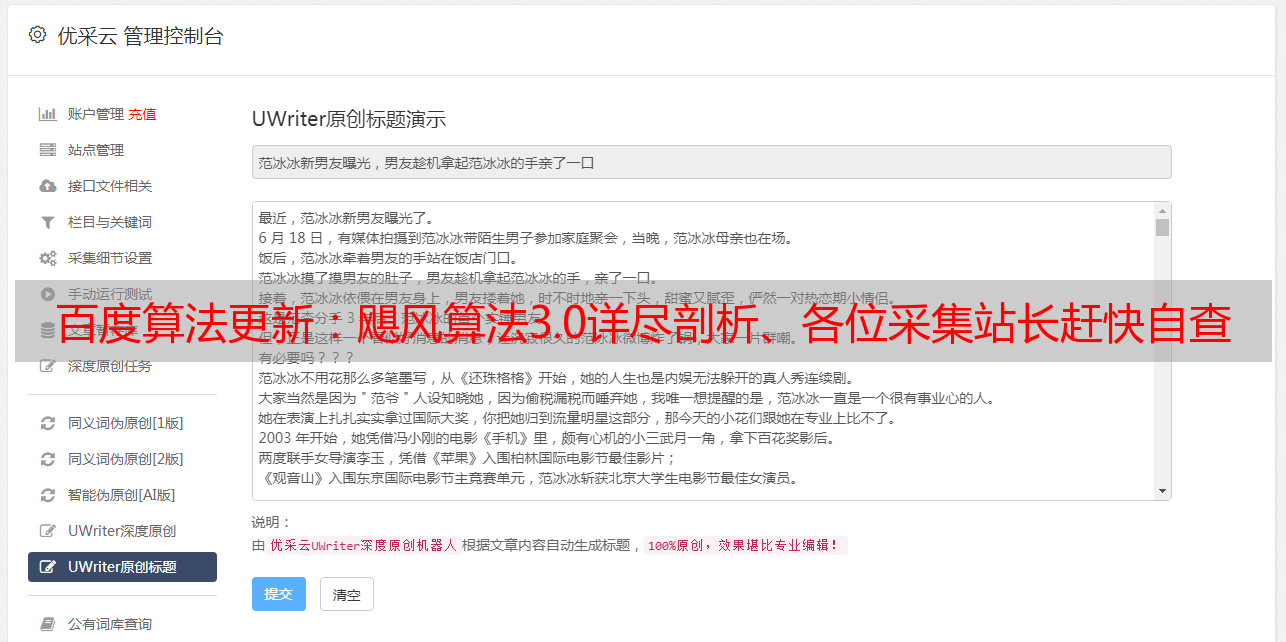 百度算法更新:飓风算法3.0详尽剖析、各位采集站长赶快自查网站把