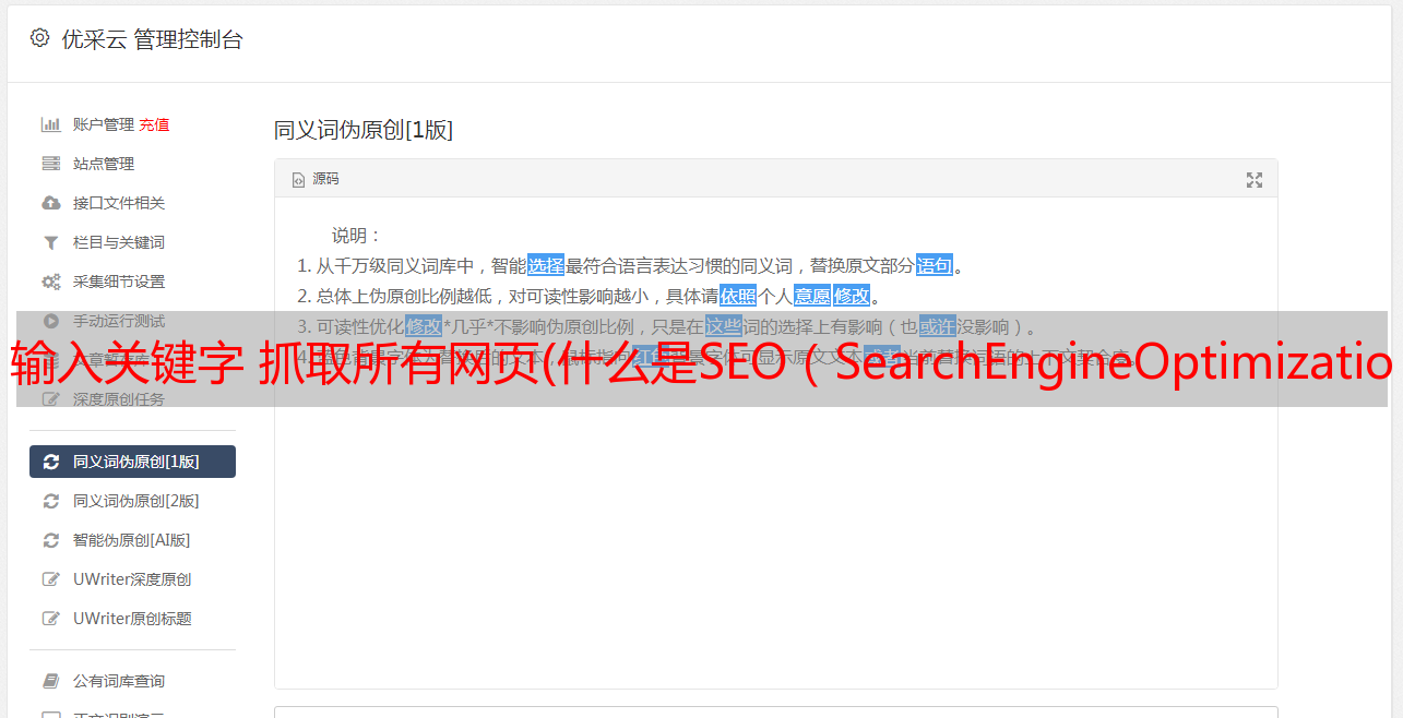 优采云 发布时间: 2021-12-27 05:07输入关键字 抓取所有网页(什么是SEO(SearchEngineOptimizationOptimization),你知道吗?