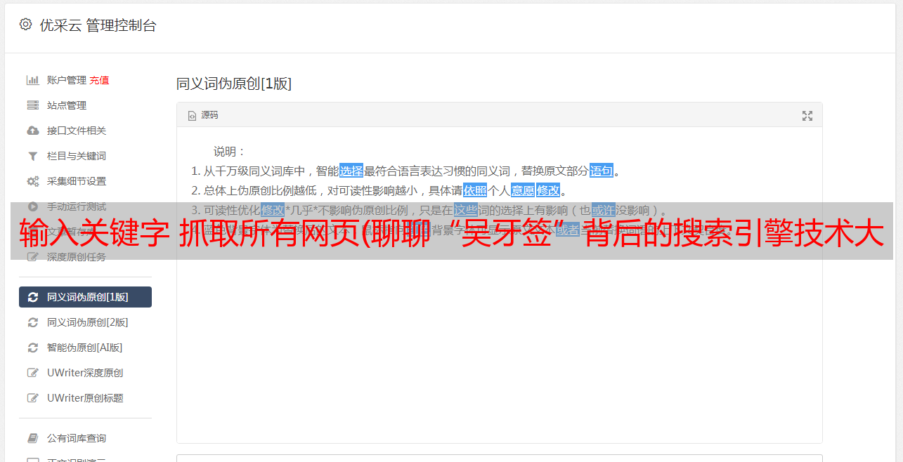 为此,搜索引擎首先对杂乱无章的网页数据进行页面分析,并对原创