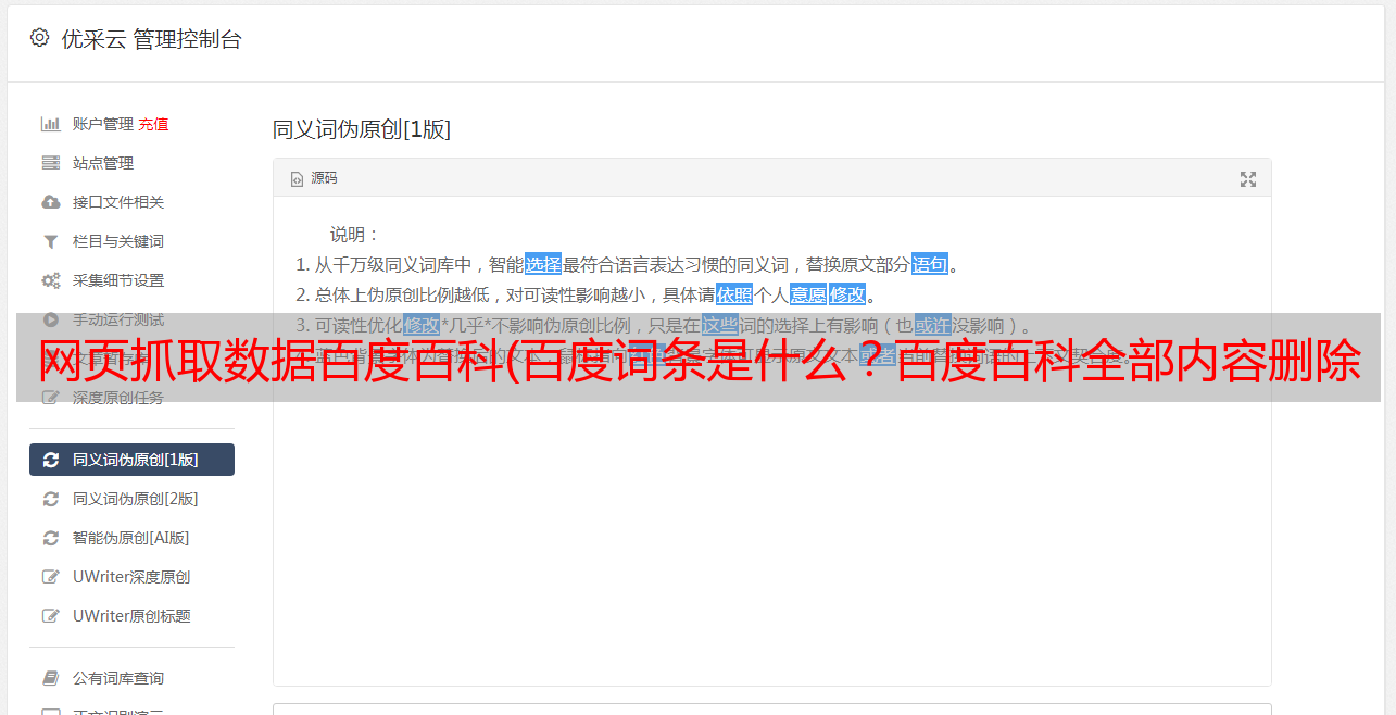 优采云 发布时间: 2021-12-27 06:06网页抓取数据百度百科(百度词条是什么?百度百科全部内容删除词条怎么回事?)