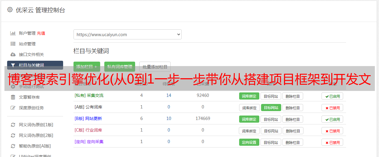 优采云 发布时间: 2021-12-27 09:07博客搜索引擎优化(从0到1一步一步带你从搭建项目框架到开发文档)