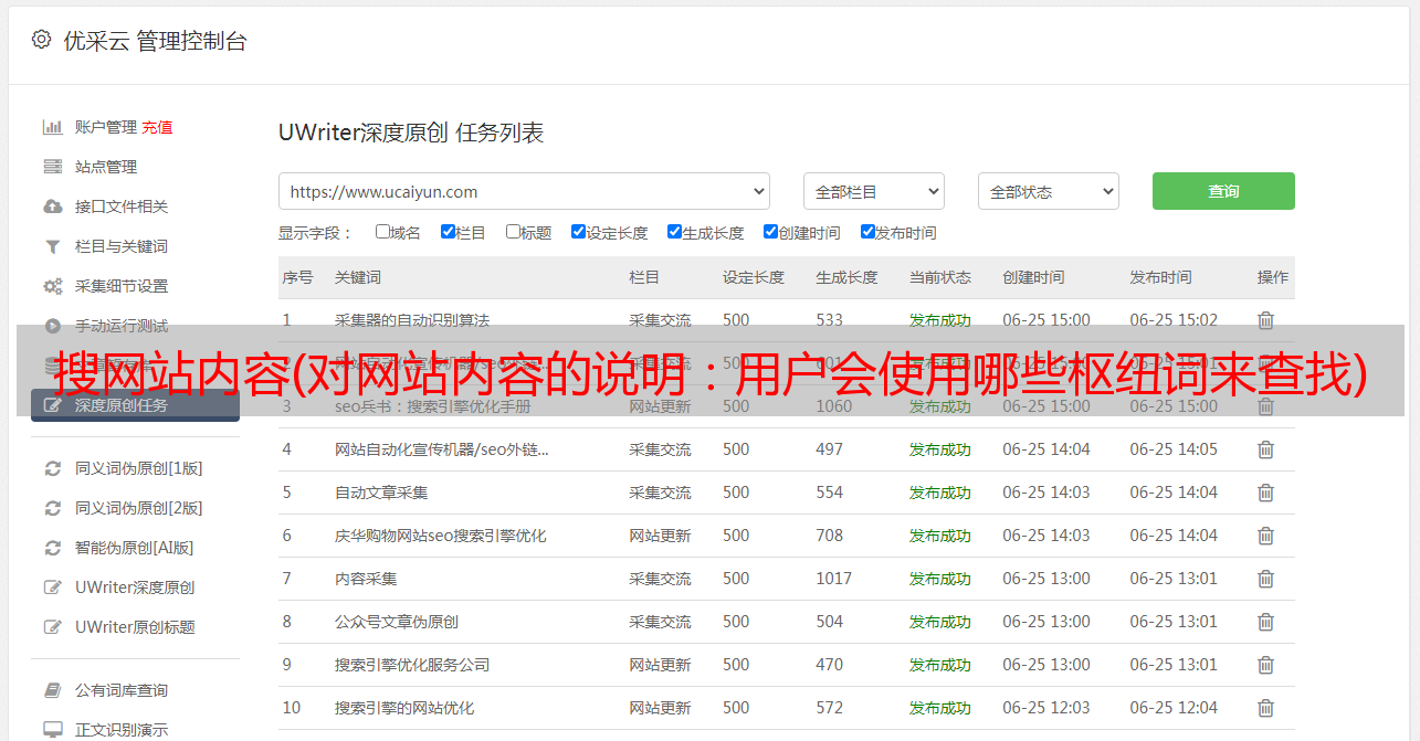 优采云 发布时间: 2021-12-27 18:18搜网站内容(对网站内容的说明:用户会使用哪些枢纽词来查找)