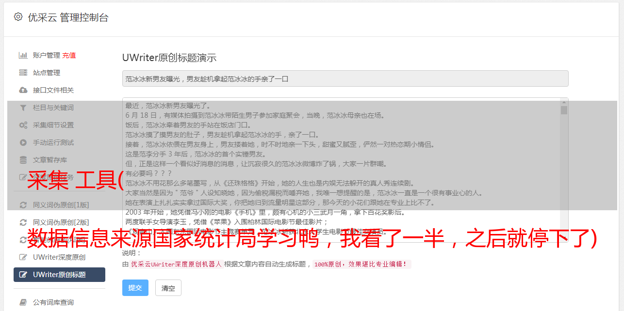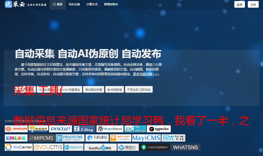 采集 工具( 数据信息来源国家统计局学习鸭,我看了一半,之后就停下了)