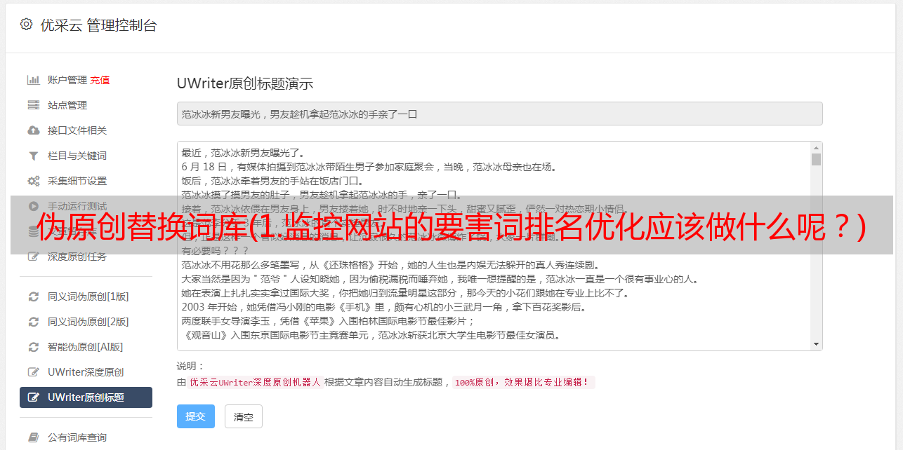 伪原创替换词库(1.监控网站的要害词排名优化应该做什么呢?)