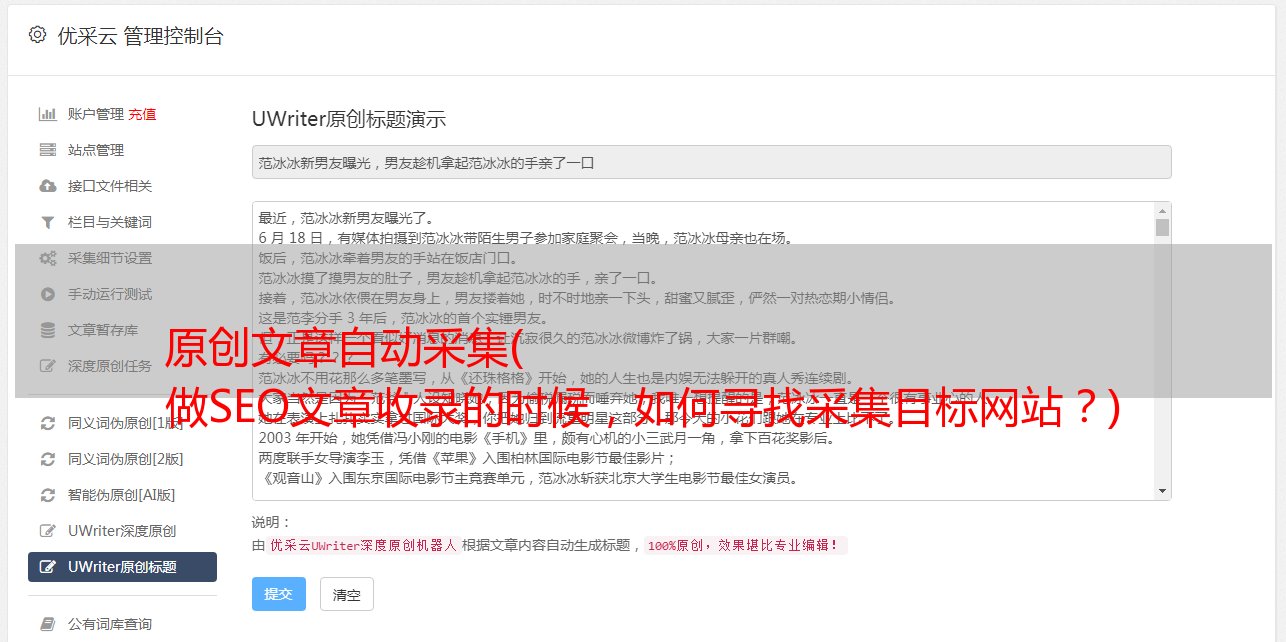 目标网站以及关键词的设置。掌握这两种方法的目的是让你批量查找更多文章,同时让文章的标题和内容成为二次