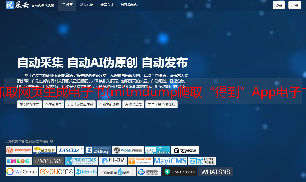 优采云 发布时间: 2021-12-29 12:14抓取网页生成电子书(mitmdump爬取“得到”App电子书信息(一)_Python学习