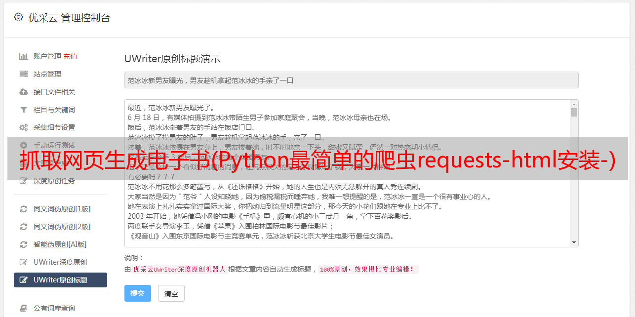 优采云 发布时间: 2021-12-29 17:09抓取网页生成电子书(Python最简单的爬虫requests-html安装-)
