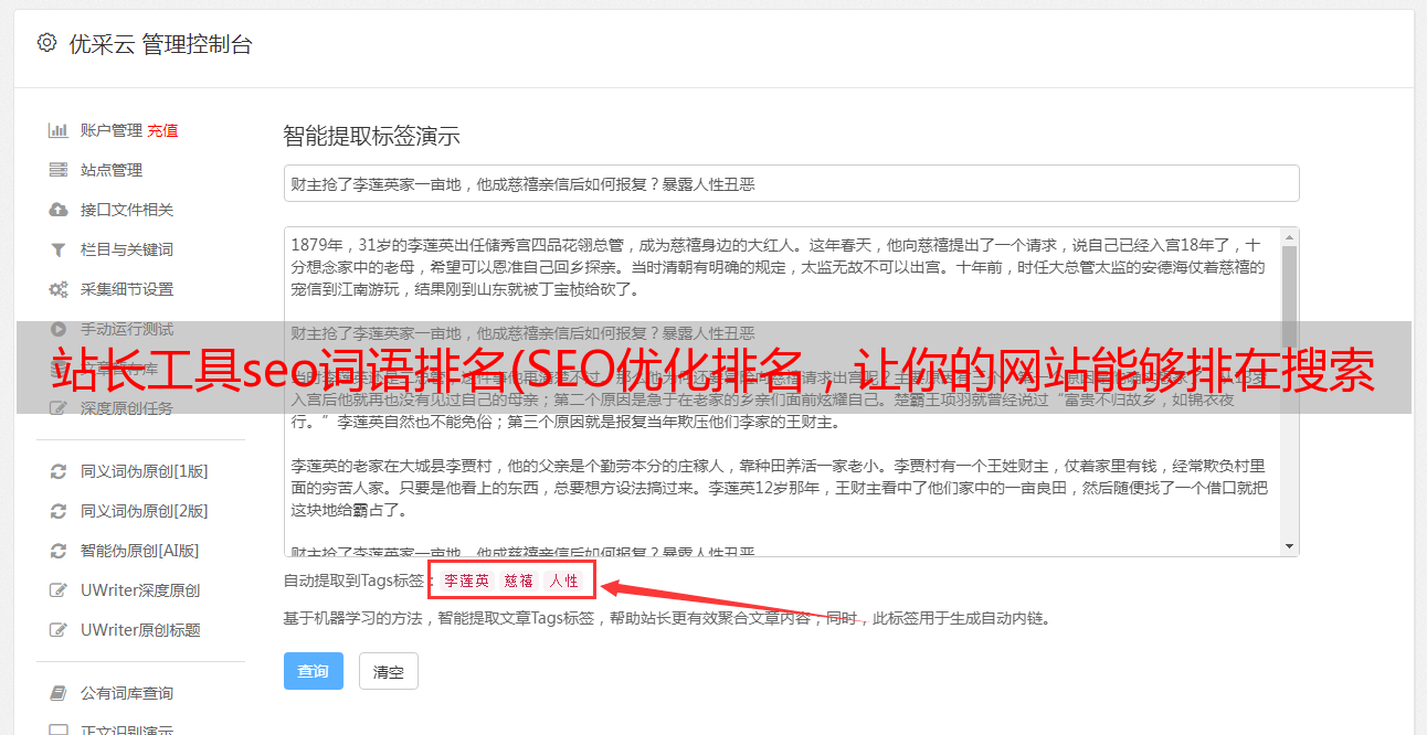 优采云 发布时间: 2021-12-29 23:21站长工具seo词语排名(SEO优化排名,让你的网站能够排在搜索引擎的前几位)
