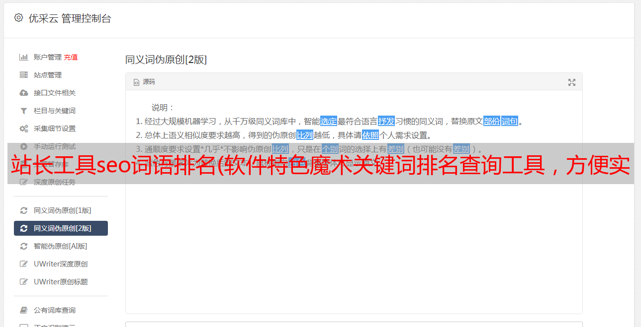 优采云 发布时间: 2021-12-30 00:01站长工具seo词语排名(软件特色魔术关键词排名查询工具,方便实用,支持多个网站多个关键词