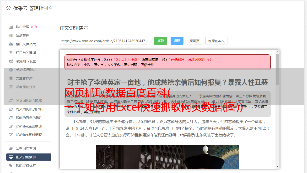 网页抓取数据百度百科( 一下如何用Excel快速抓取网页数据(图))