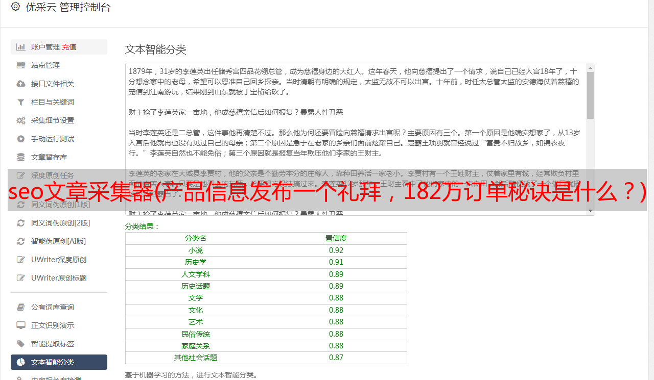 seo文章采集器(产品信息发布一个礼拜,182万订单秘诀是什么?)