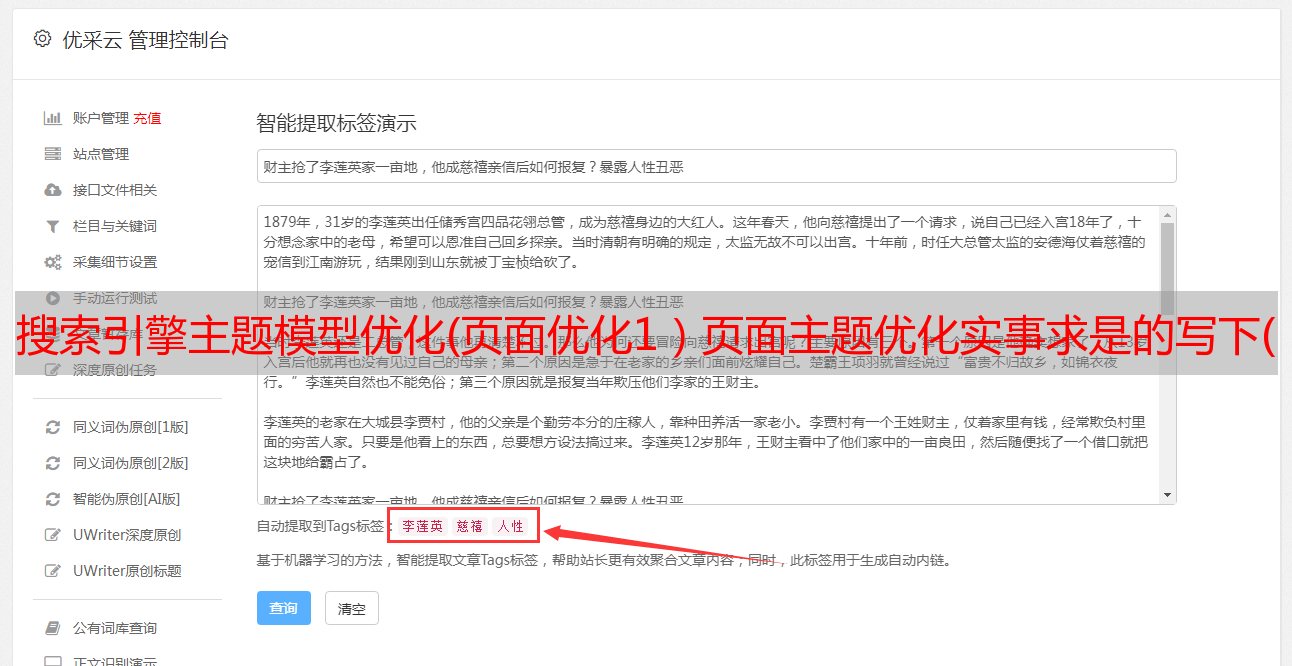 优采云 发布时间: 2021-12-30 12:11搜索引擎主题模型优化(页面优化1)页面主题优化实事求是的写下(组图))