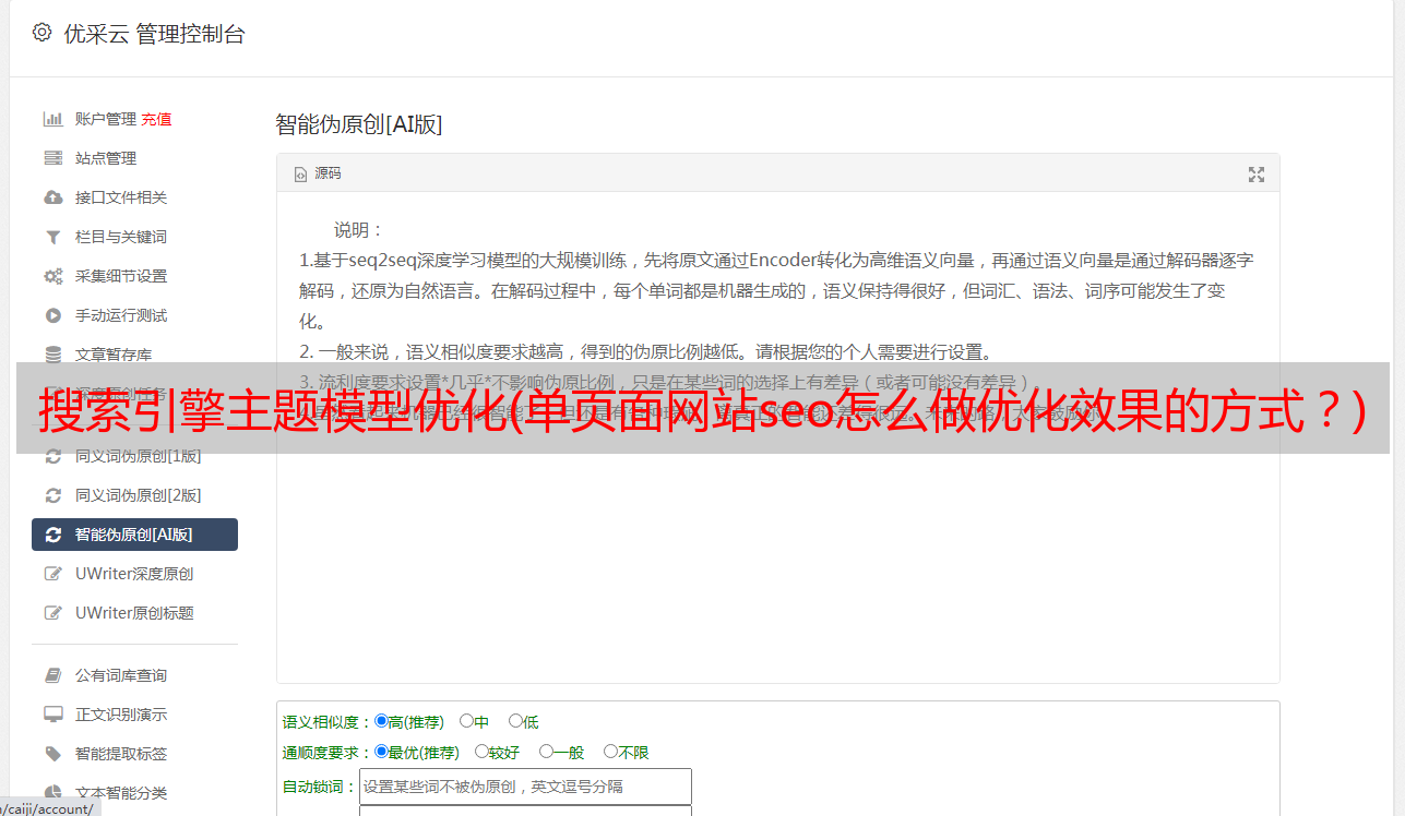 优采云 发布时间: 2021-12-30 12:11搜索引擎主题模型优化(单页面网站seo怎么做优化效果的方式?)
