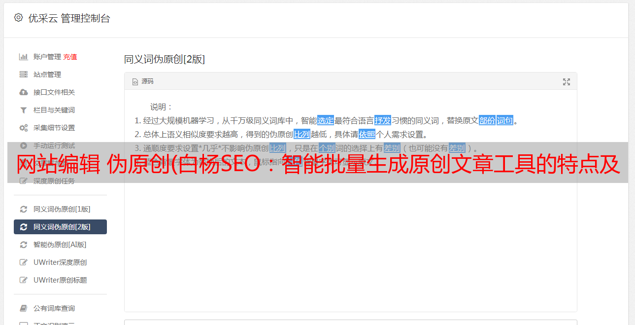 网站编辑 伪原创(白杨SEO:智能批量生成原创文章工具的特点及特点)
