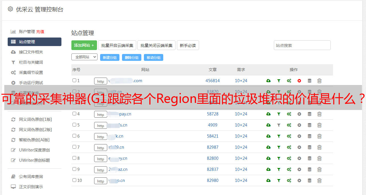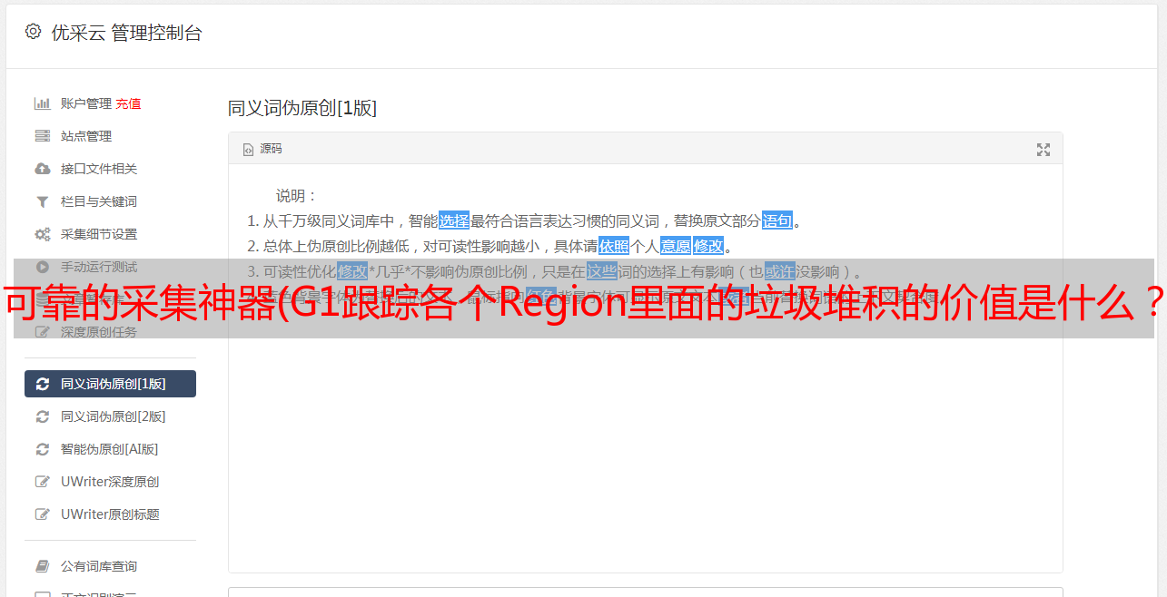 优采云 发布时间: 2021-12-31 06:20可靠的采集神器(G1跟踪各个Region里面的垃圾堆积的价值是什么?