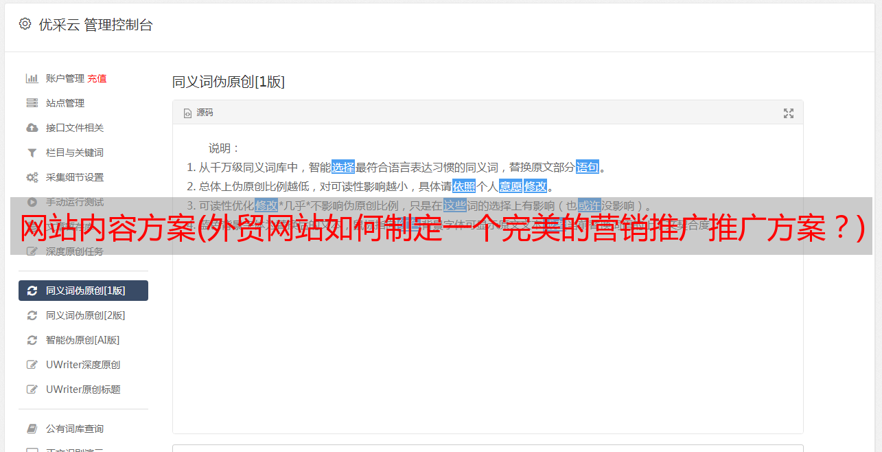 优采云 发布时间: 2021-12-31 15:00网站内容方案(外贸网站如何制定一个完美的营销推广推广方案?)