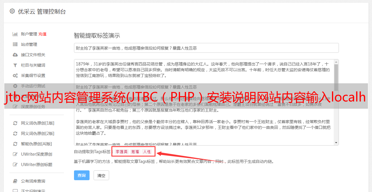 优采云 发布时间: 2022-01-01 08:10jtbc网站内容管理系统(JTBC(PHP)安装说明网站内容输入localhost)