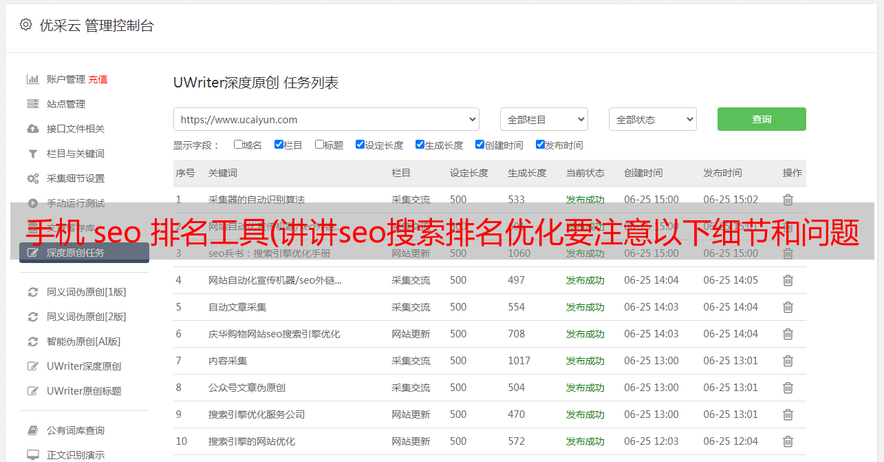 优采云 发布时间: 2022-01-01 17:04手机 seo 排名工具(讲讲seo搜索排名优化要注意以下细节和问题!!)