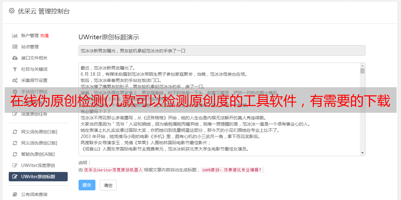 优采云 发布时间: 2022-01-02 07:11在线伪原创检测(几款可以检测原创度的工具软件,有需要的下载使用)