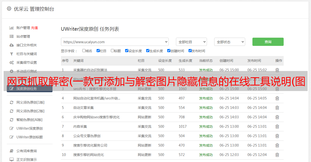 优采云 发布时间: 2022-01-02 15:03网页抓取解密(一款可添加与解密图片隐藏信息的在线工具说明(图))