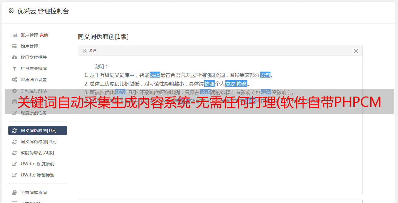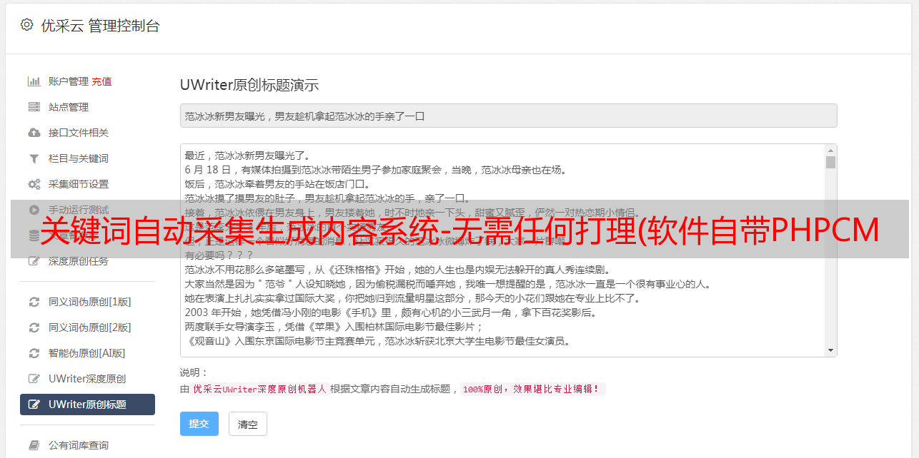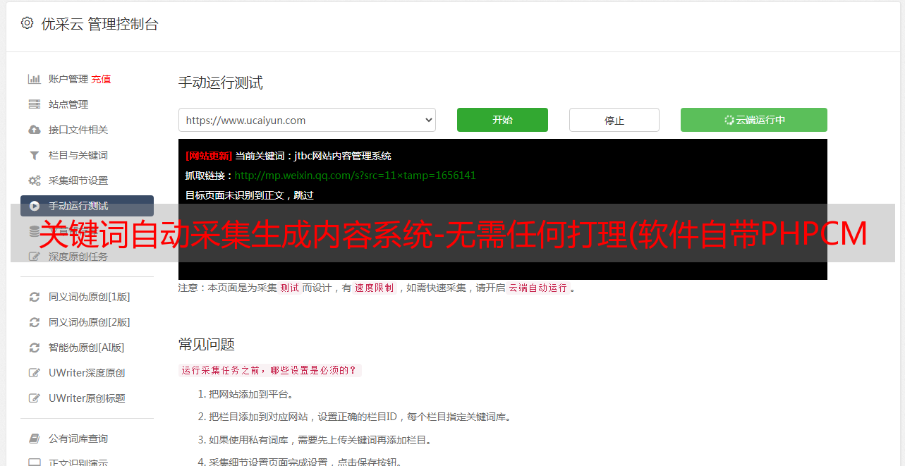 关键词自动采集生成内容系统-无需任何打理(软件自带PHPCMS发布功能采集后直接直接发布到网站上)