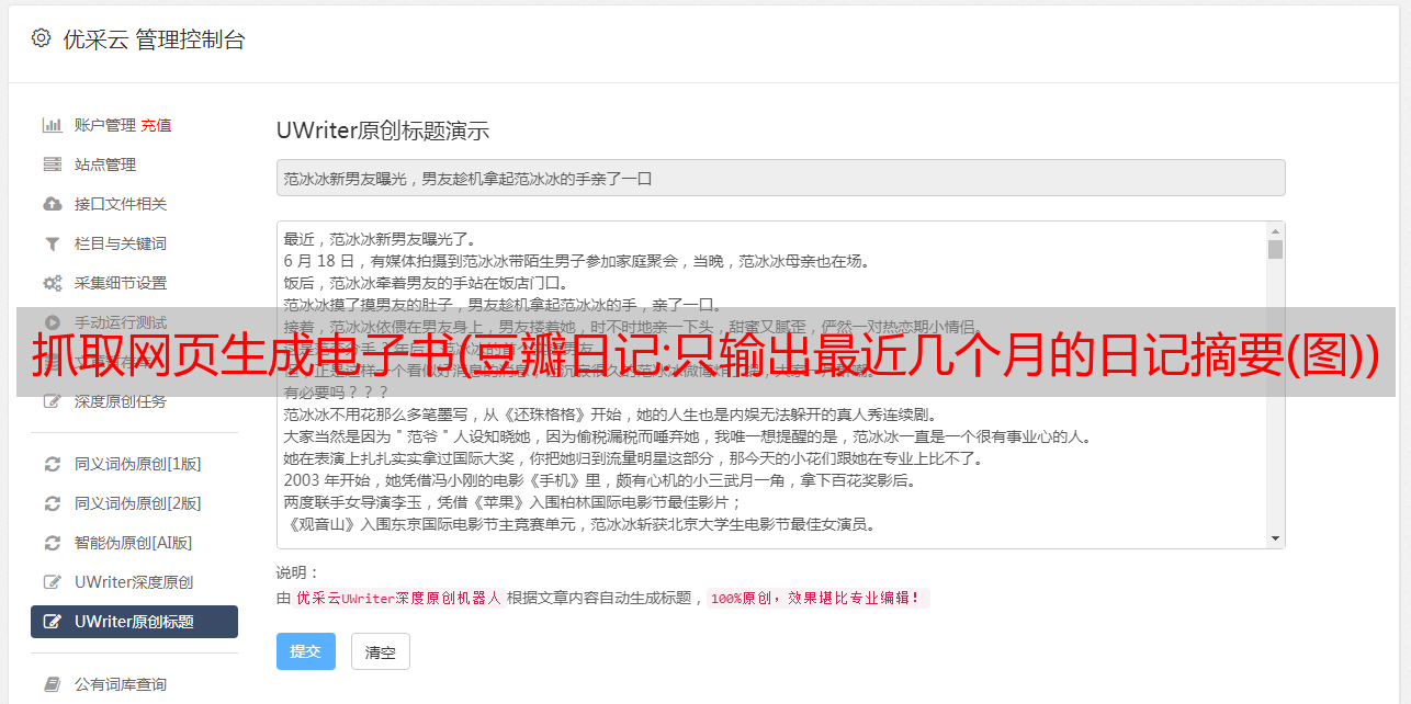 优采云 发布时间: 2022-01-03 09:17抓取网页生成电子书(豆瓣日记:只输出最近几个月的日记摘要(图))