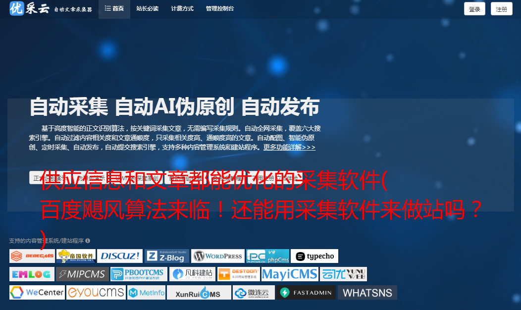 供应信息和文章都能优化的采集软件( 百度飓风算法来临!还能用采集软件来做站吗? )