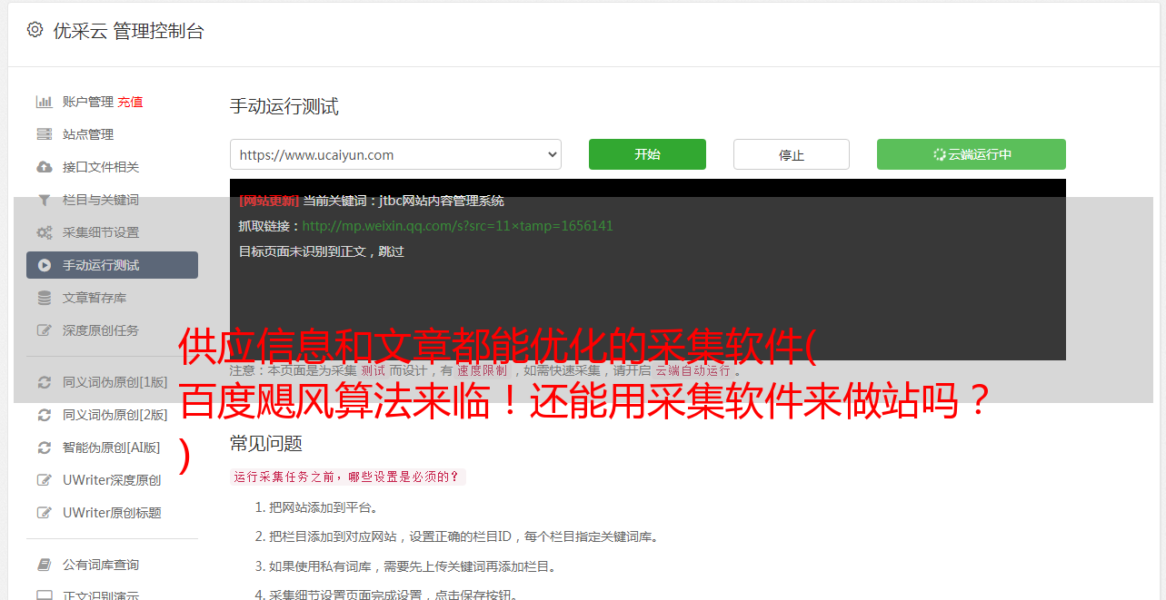 百度飓风算法来了!还可以用采集软件建站吗? 采集 车站有出路吗?小编是纯采集站长,我用采集软件做过。网站目前有五千左右,通过采集实现对五六, 伪原创@ >专门用于搜索,特别适用于数量大、采集类型的网站。