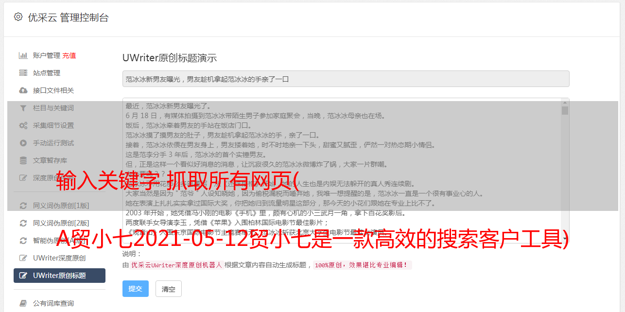 输入关键字 抓取所有网页( A贸小七2021-05-12贸小七是一款高效的搜索客户工具)