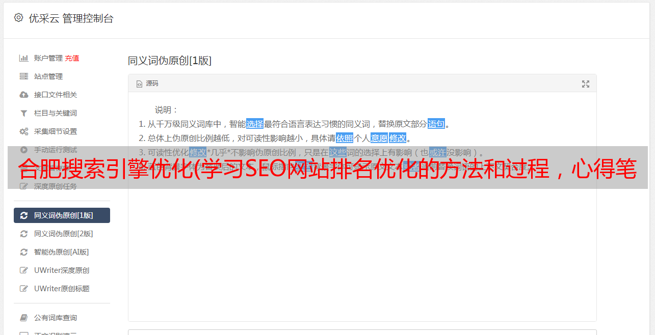 优采云 发布时间: 2022-01-03 17:20合肥搜索引擎优化(学习SEO网站排名优化的方法和过程,心得笔记分享)