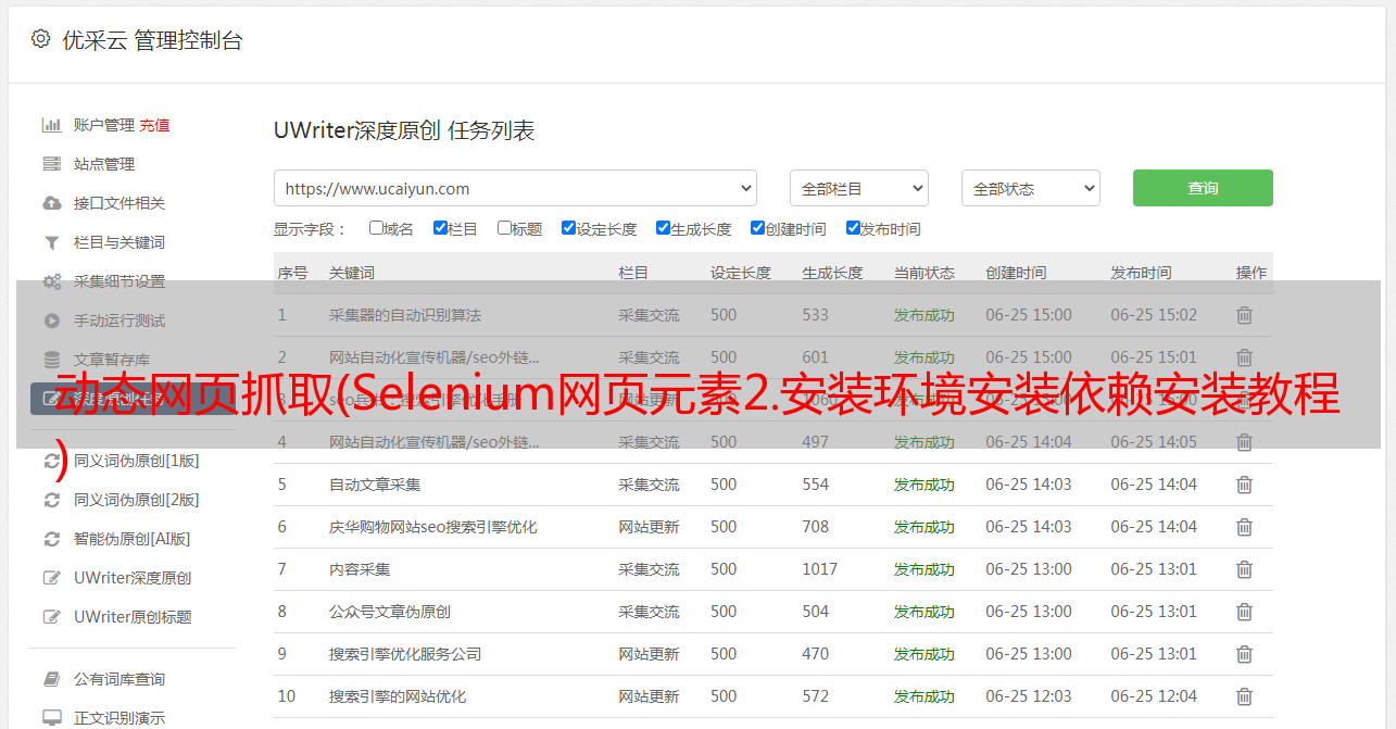 优采云 发布时间: 2022-01-04 08:09动态网页抓取(Selenium网页元素2.安装环境安装依赖安装教程