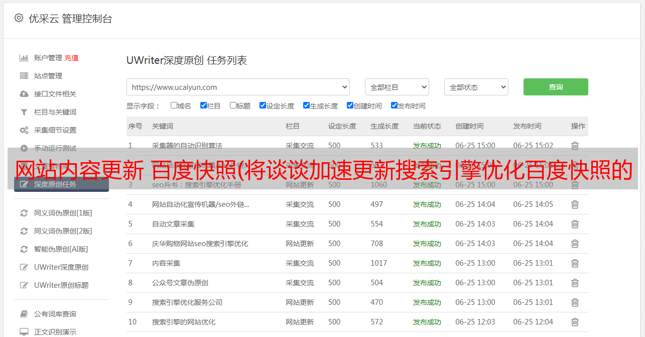 优采云 发布时间: 2022-01-04 14:11网站内容更新 百度快照(将谈谈加速更新搜索引擎优化百度快照的工作方法)