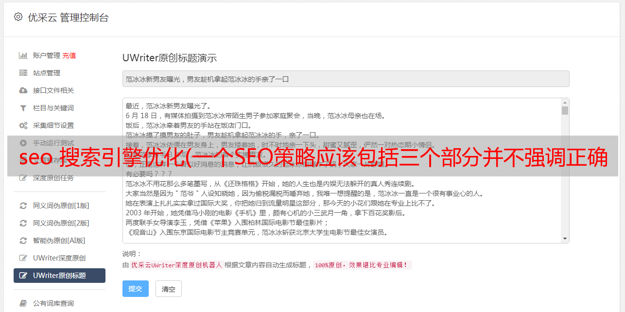 优采云 发布时间: 2022-01-04 15:06seo 搜索引擎优化(一个SEO策略应该包括三个部分并不强调正确的执行顺序)