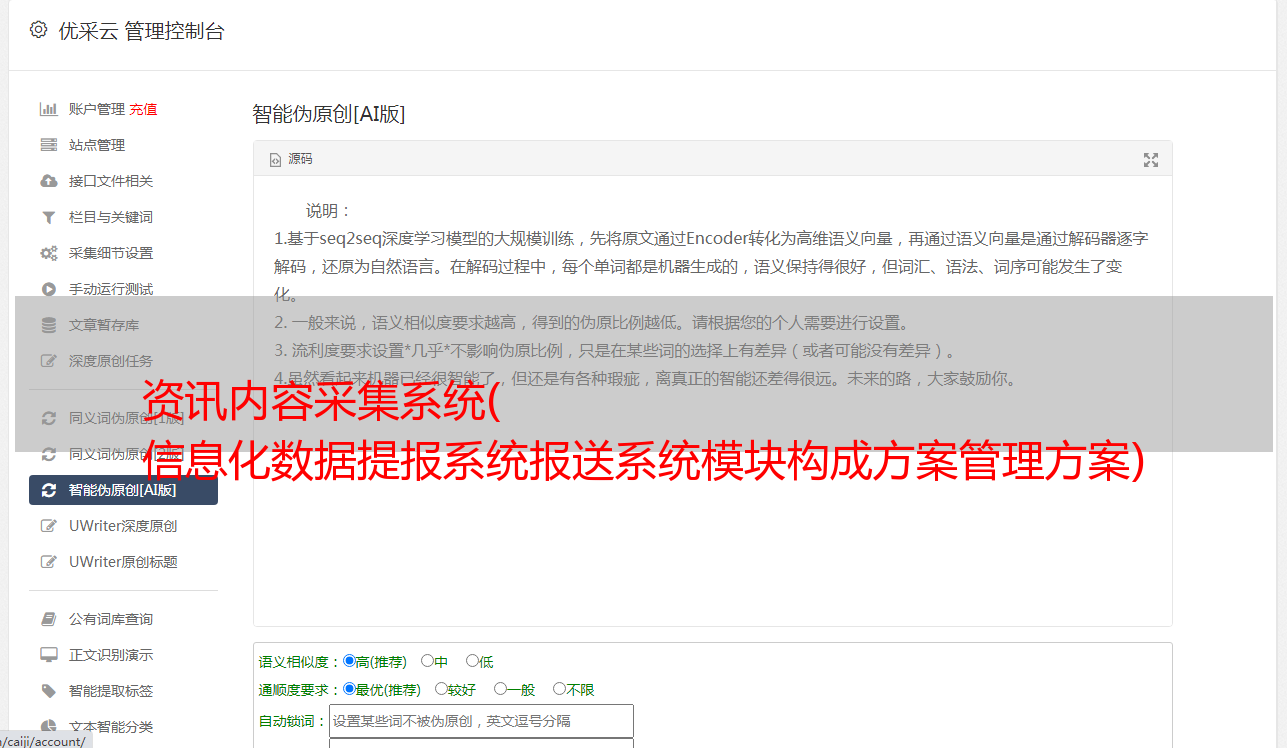 资讯内容采集系统( 信息化数据提报系统报送系统模块构成方案管理方案)