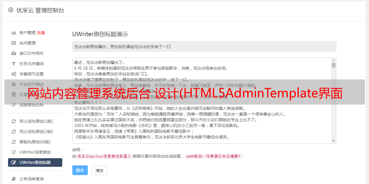 优采云 发布时间: 2022-01-04 19:07网站内容管理系统后台 设计(HTML5AdminTemplate界面非常清爽的一套网站管理后台管理系统模板)