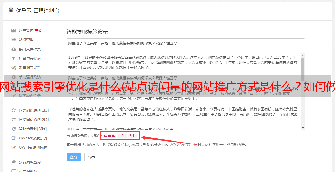 优采云 发布时间: 2022-01-05 02:19网站搜索引擎优化是什么(站点访问量的网站推广方式是什么?如何做对?