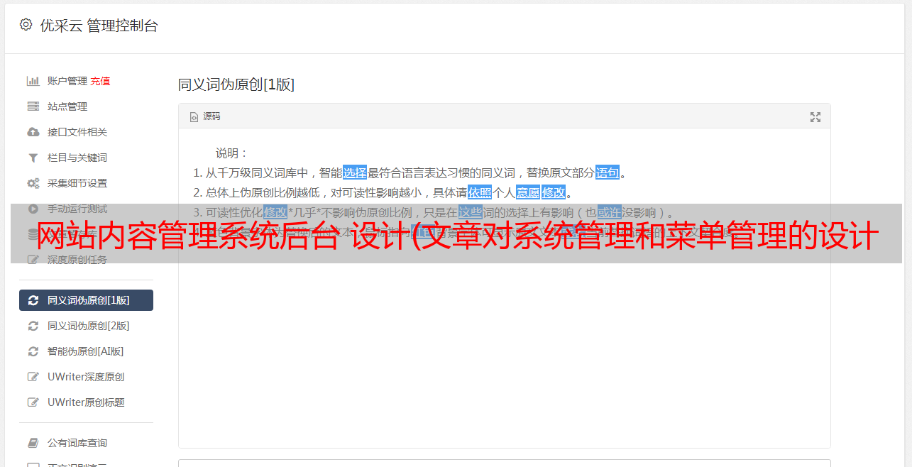 优采云 发布时间: 2022-01-06 03:06网站内容管理系统后台 设计(文章对系统管理和菜单管理的设计过程以及业务逻辑展开了讲解)