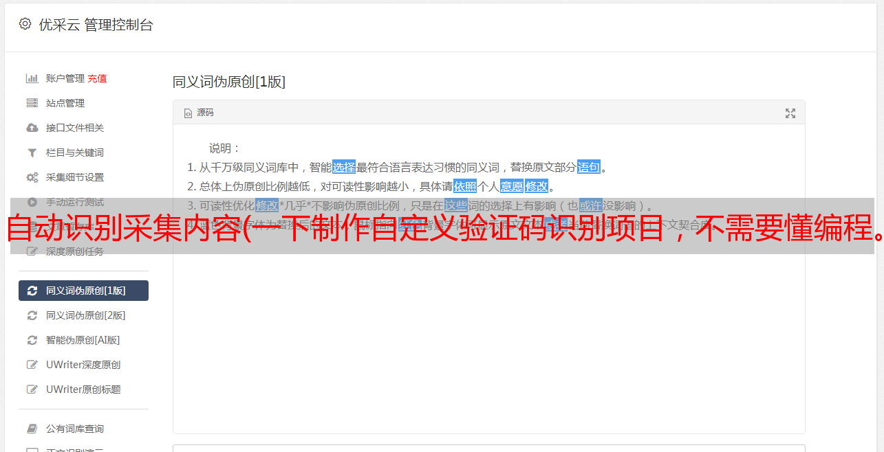 自动识别采集内容(一下制作自定义验证码识别项目,不需要懂编程。。