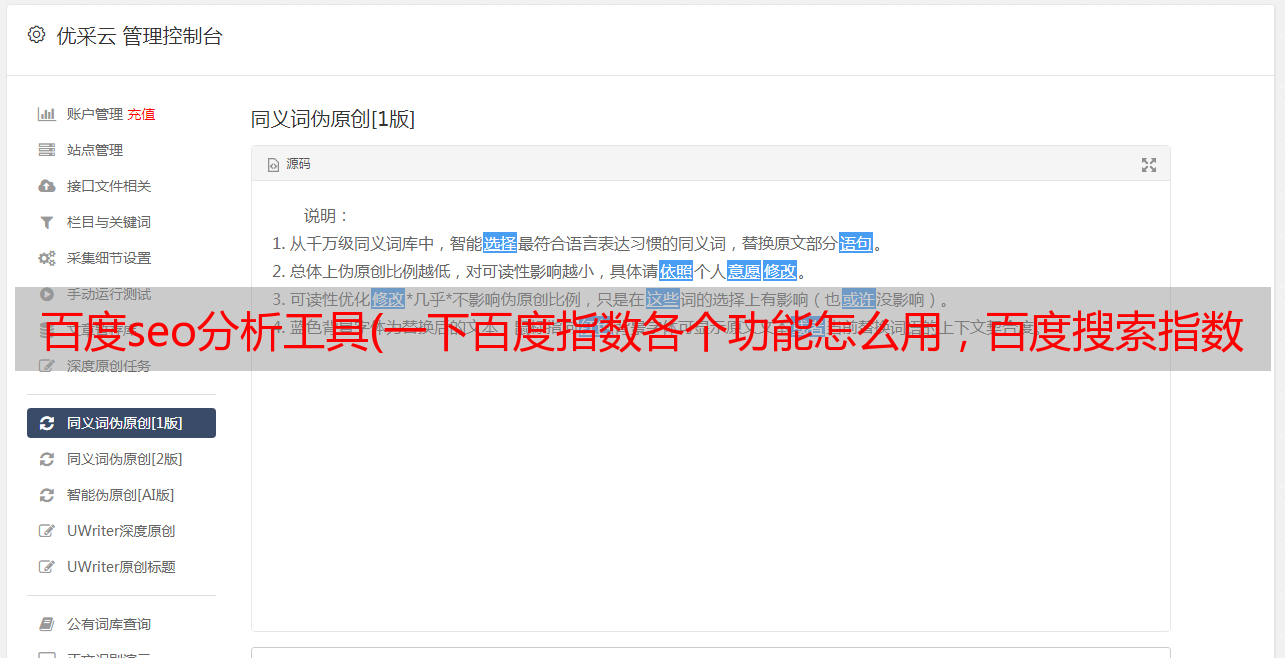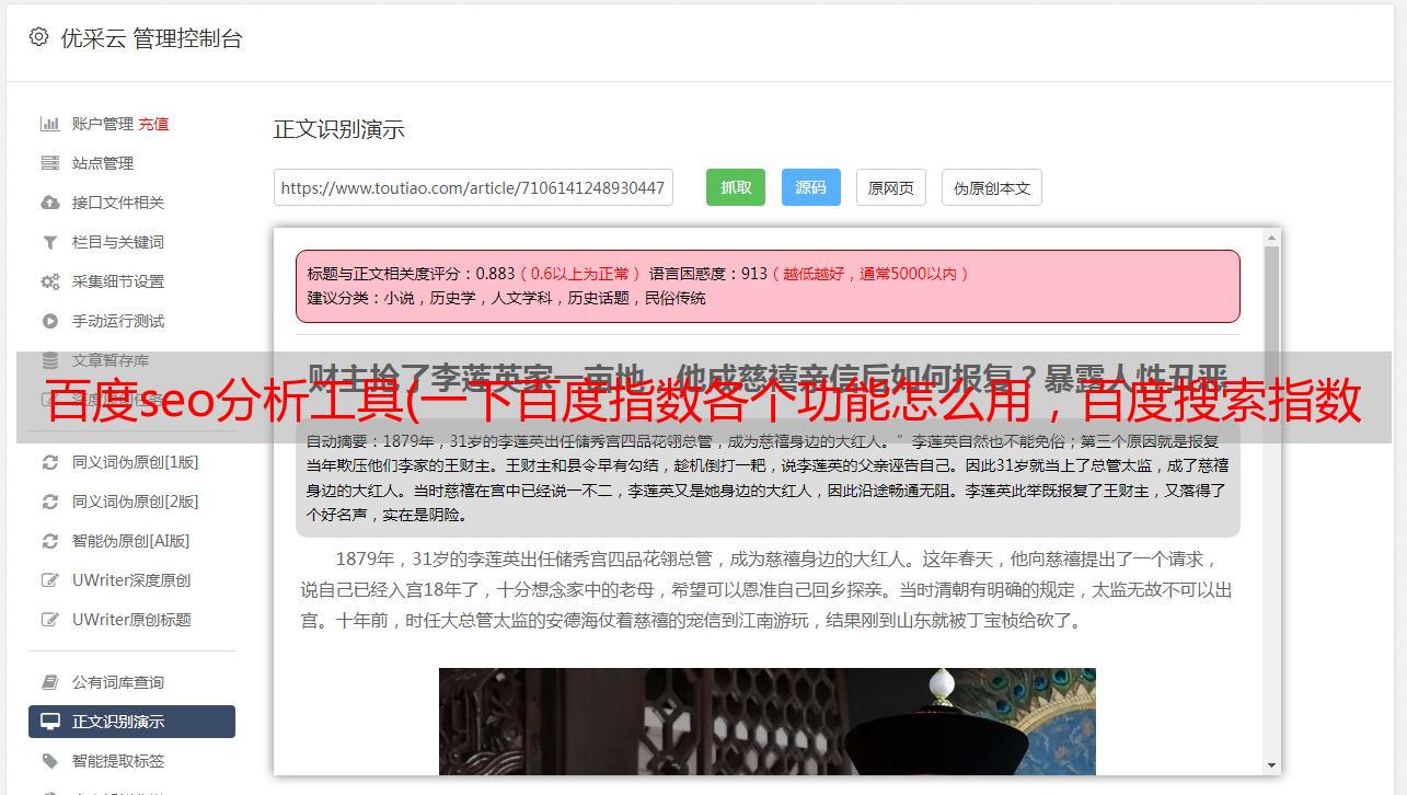 优采云 发布时间: 2022-01-06 06:06百度seo分析工具(一下百度指数各个功能怎么用,百度搜索指数需求图谱)