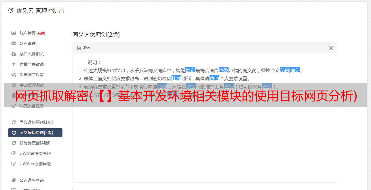 优采云 发布时间: 2022-01-06 19:02网页抓取解密(【】基本开发环境相关模块的使用目标网页分析)